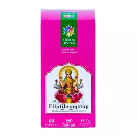 FITOFIBROMSTOP Capsule are o formulă specială bazată pe învăţături străvechi ale medicinei tradiţionale indiene, Ayurveda. Produsul contribuie la menținerea sănătății organelor reproductive (Haritaki) și a echilibrului hormonal feminin în timpul climacteriului (Lemnul-lui-Avram). Contribuie la diminuarea manifestărilor neplăcute asociate menopauzei (Lemnul-lui-Avram). Ajută la menținerea unei stări de confort înainte și în timpul menstruației (Lemnul-lui-Avram, Guggul). Adițional, ajută la păstrarea unui libido puternic (Haritaki).  Are efect antiinflamator pelvin (Haritaki, Bhumyamalaki) si depurativ limfatic (Bhumyamalaki, Guggul). Favorizează micșorarea și vindecarea fibroamelor uterine (Yavani, Guggul).